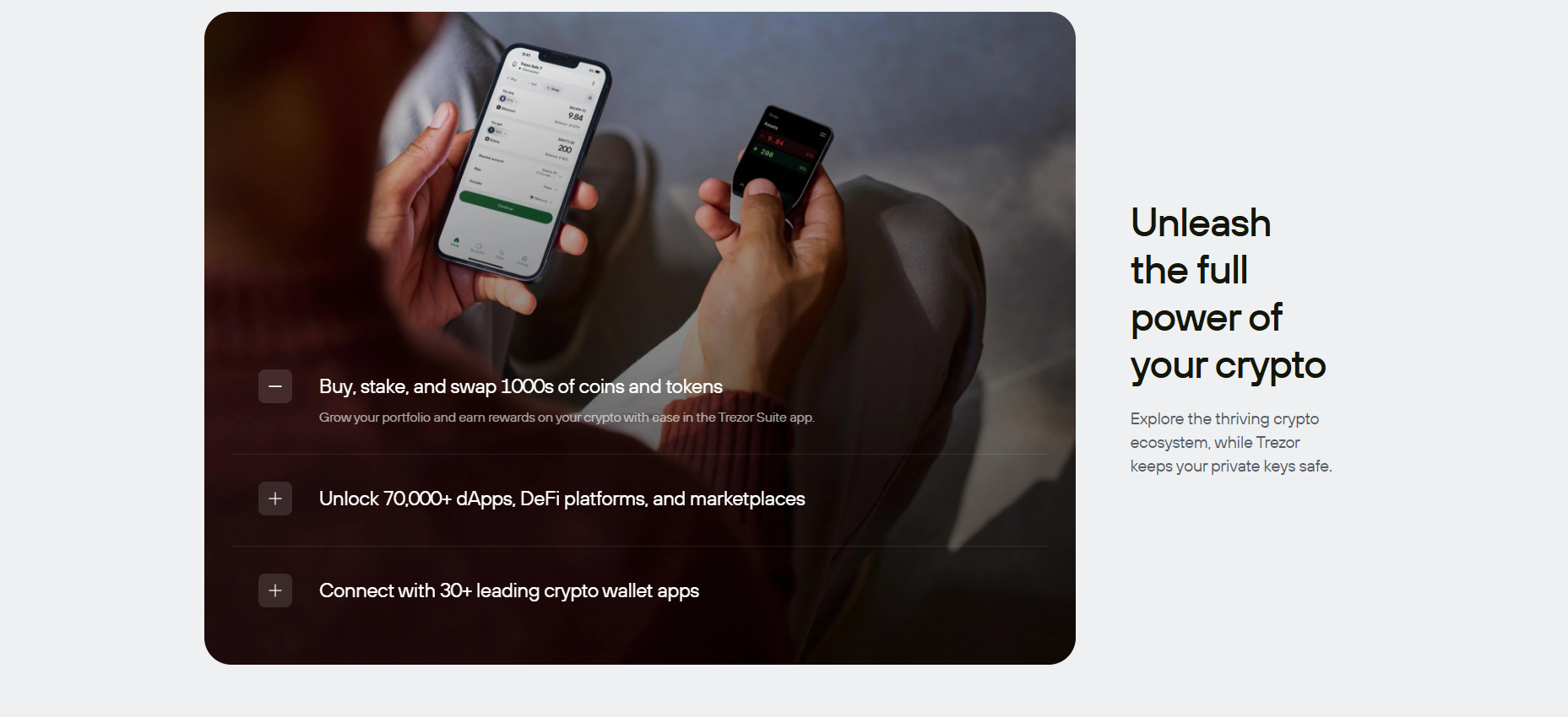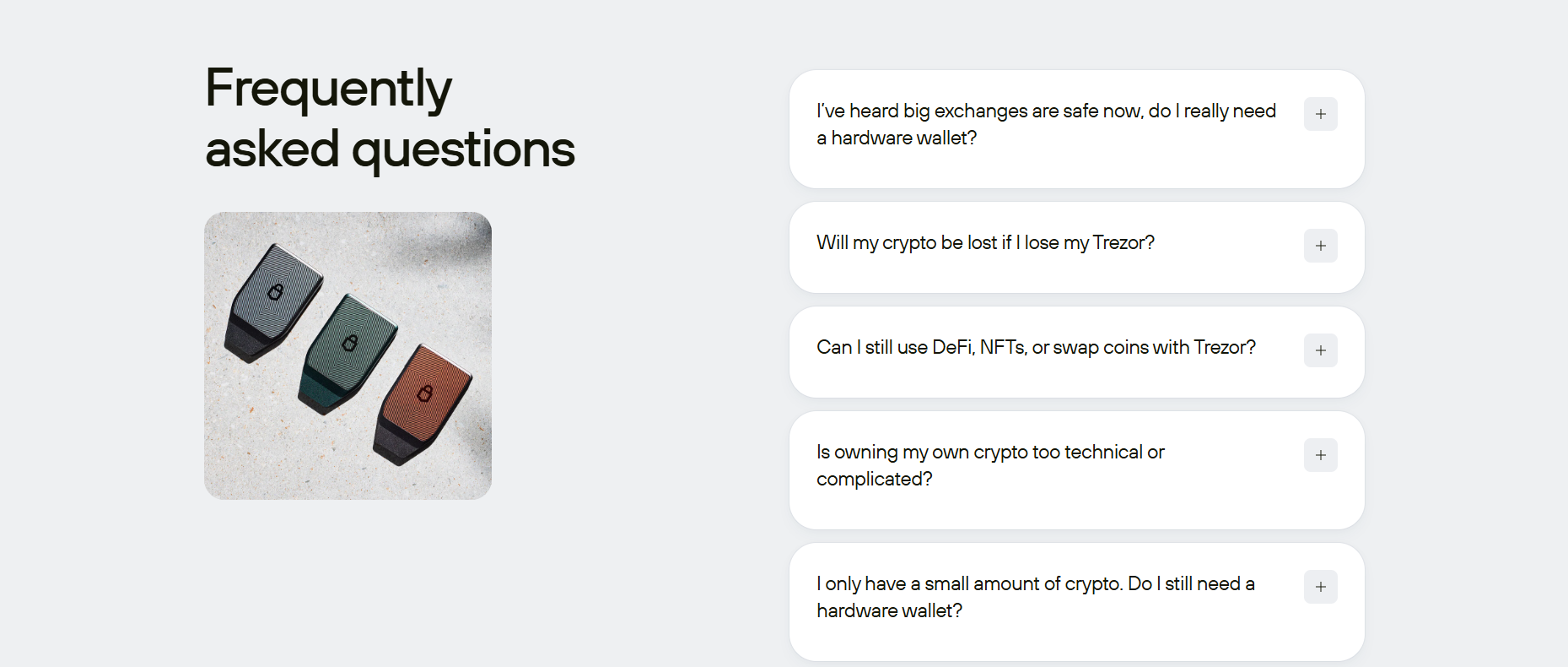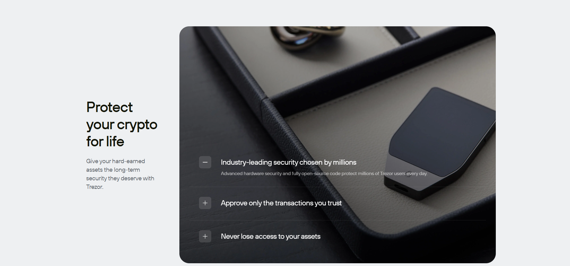 Not at all. Trezor makes it simple to take control of your assets. As a non-custodial wallet, Trezor ensures that only you have the keys to your cryptocurrency. The setup process is simple, with an intuitive interface and clear step-by-step instructions. This makes self-custody easy, keeping your cryptocurrency safe in your hands without unnecessary complications.I only have a small amount of cryptocurrency.