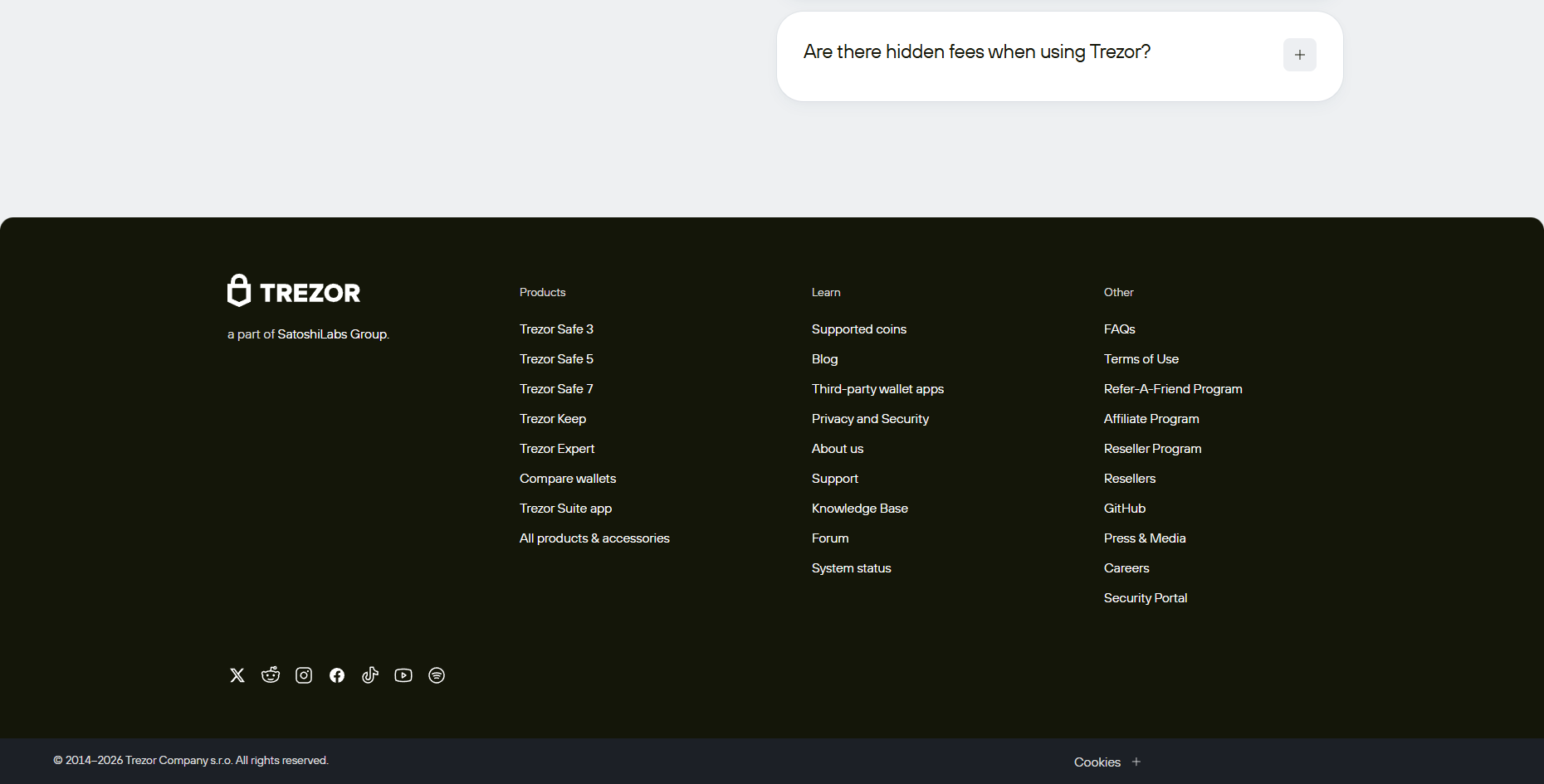 Are there any hidden fees when using Trezor?